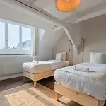 Appartement Deux Chambres Sur La Grande Place comprend 2 chambres à coucher à coucher. Le logement comprend également 2 salles de bains avec une douche. Un sèche-cheveux et des draps de bain sont également présents dans la salle de bain.